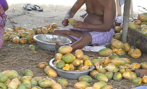 采摘野生芒果时,要轻拿轻放,避免损伤果实。可以用剪刀或小刀将芒果从树上剪下或割下。
